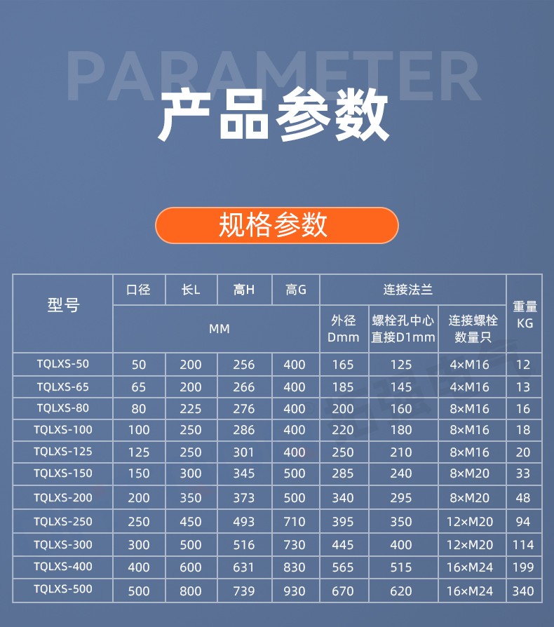口径:DN40/50/65/80/100/150/200/250/300